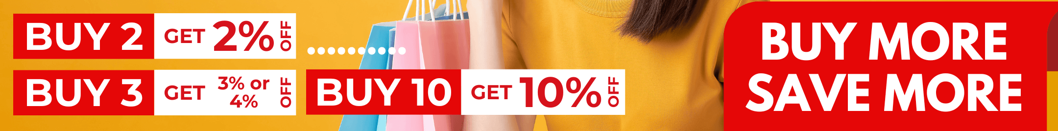 Save more with every purchase! Get 2% off for each additional item you buy (up to 10% off for 6 items and more) OR enjoy 1% off for each additional item you buy (up to 10% off for 10 items and more). The more you buy, the more you save!