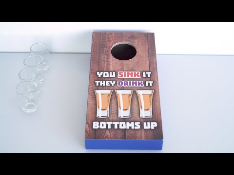 - Includes 1 game board, 8 cornhole bags and 4 shot glasses.