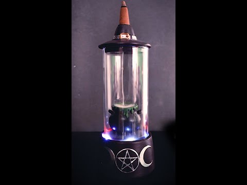 - Glass case backflow incense burner featuring a witch's hat and cauldron.