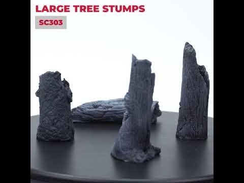 - Four dry tree stumps of a variety of European trees, with detailed bark texture and interior. Ideal to place on dioramas, choosing the tones to depict wet or dry environments, even adding tufts or moss from Vallejo Scenery references.